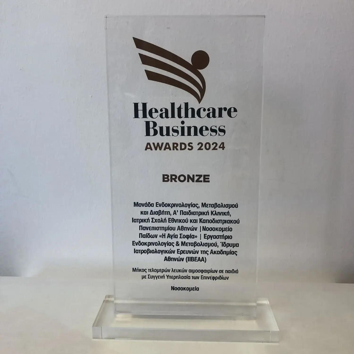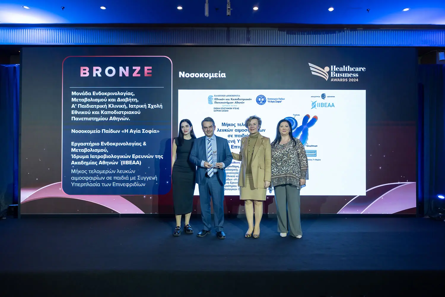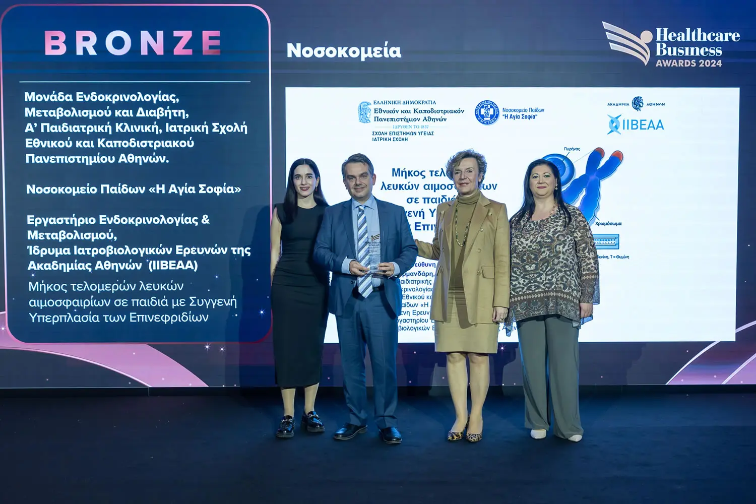 Το βραβείο BRONZE στην κατηγορία Ερευνητικό Έργο σε Πανεπιστήμια / Εκπαιδευτικά Ιδρύματα / Ερευνητικά Κέντρα / Νοσοκομεία απονεμήθηκε στη Μονάδα Ενδοκρινολογίας, Μεταβολισμού και Διαβήτη, Α΄ Παιδιατρική Κλινική, Ιατρική Σχολή Εθνικού και Καποδιστριακού Πανεπιστημίου Αθηνών, Νοσοκομείο Παίδων ‘Η Αγία Σοφία’ & το Εργαστήριο Ενδοκρινολογίας & Μεταβολισμού, Ίδρυμα Ιατροβιολογικών Ερευνών της Ακαδημίας Αθηνών για την μελέτη “Μήκος τελομερών λευκών αιμοσφαιρίων σε παιδιά με Συγγενή Υπερπλασία των Επινεφριδίων”.