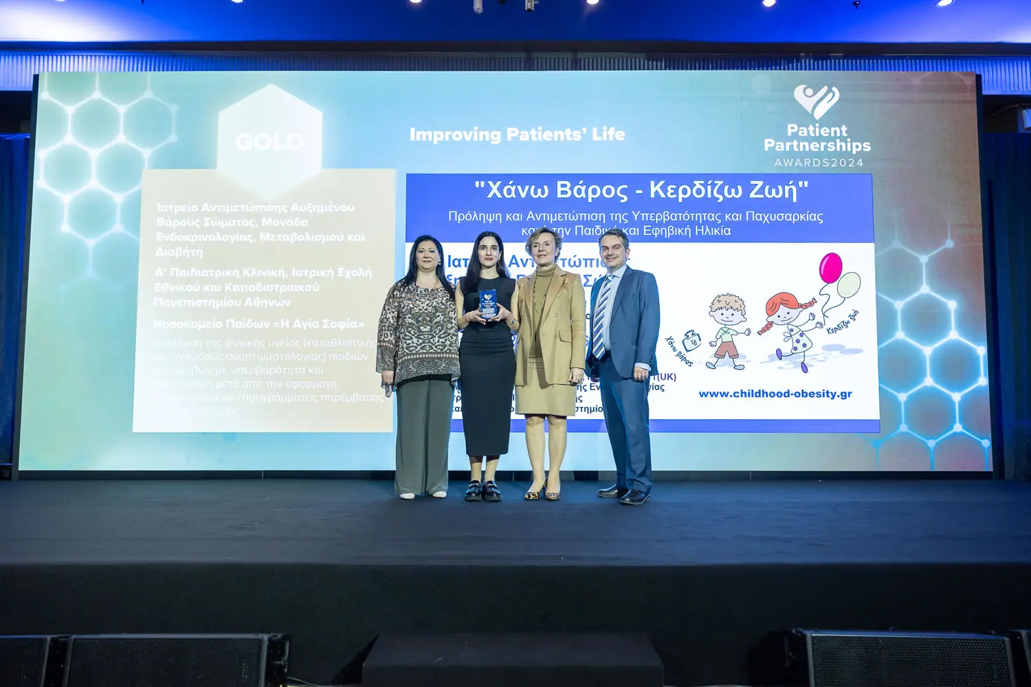 Το βραβείο GOLD στην κατηγορία Improving Patients’ Life απονεμήθηκε στο Κέντρο Πρόληψης και Αντιμετώπισης Αυξημένου Βάρους Σώματος, Μονάδα Ενδοκρινολογίας, Μεταβολισμού και Διαβήτη, Α΄ Παιδιατρική Κλινική, Ιατρική Σχολή Εθνικού και Καποδιστριακού Πανεπιστημίου Αθηνών, Νοσοκομείο Παίδων ‘Η Αγία Σοφία’ για την μελέτη “Βελτίωση της ψυχικής υγείας (καταθλιπτικής και αγχώδους συμπτωματολογίας) παιδιών και εφήβων με υπερβαρότητα και παχυσαρκία μετά από την εφαρμογή εξατομικευμένου προγράμματος παρέμβασης στον τρόπο ζωής”.